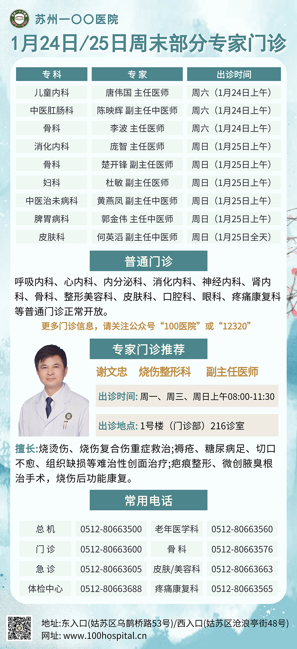 1月24日、25日周末部分专家门诊