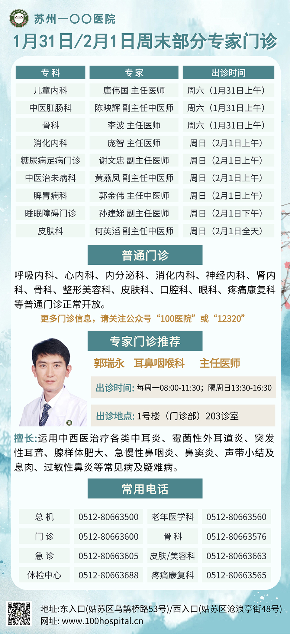 0512-80663605(急诊) 0512-80663688(体检中心)