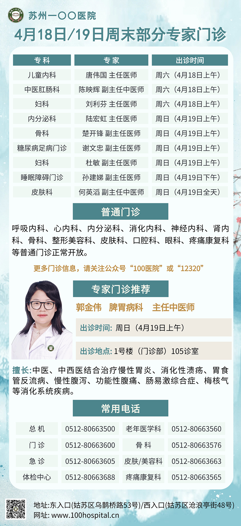 4月18日、19日周末部分专家门诊