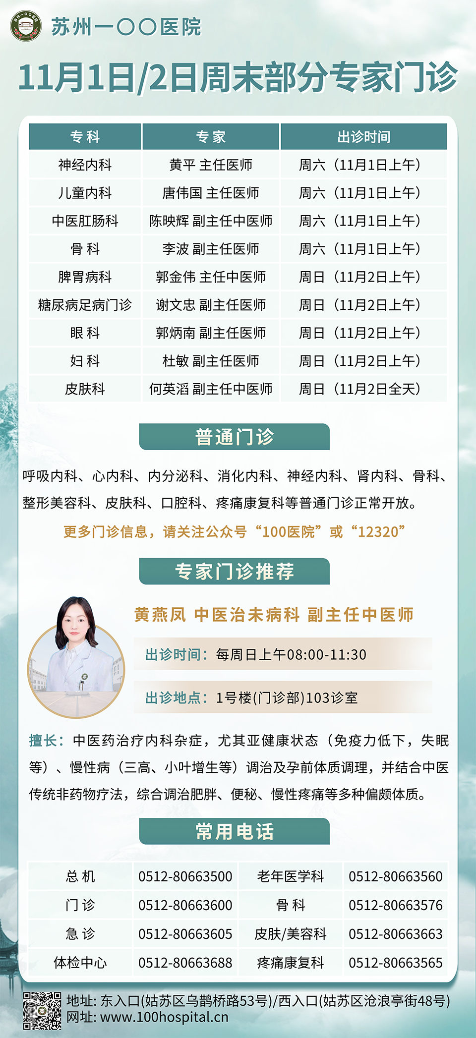 11月1日、2日周末部分专家门诊