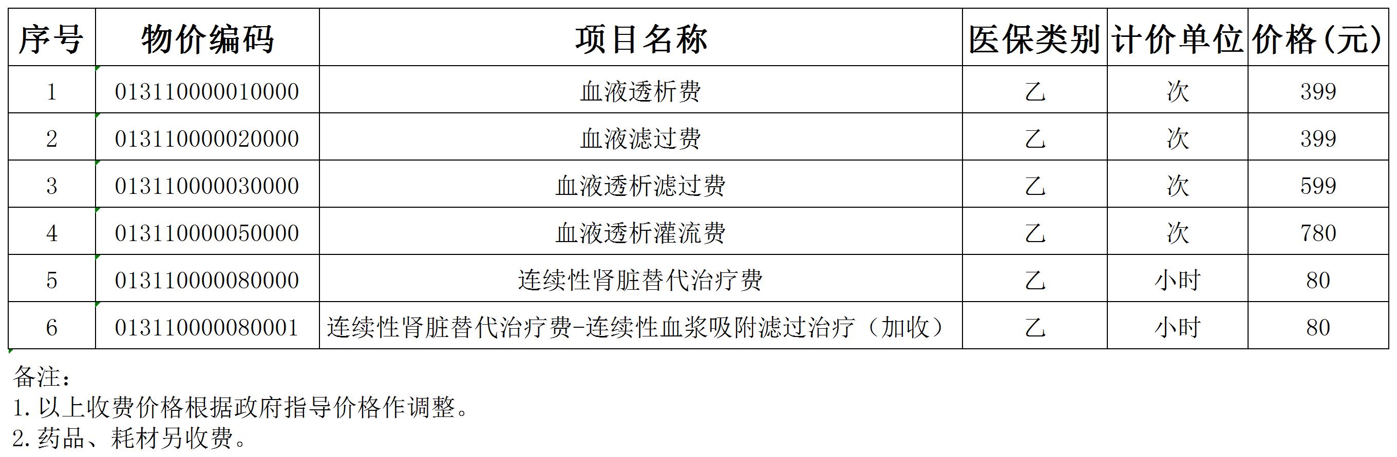 血液透析收费项目公示