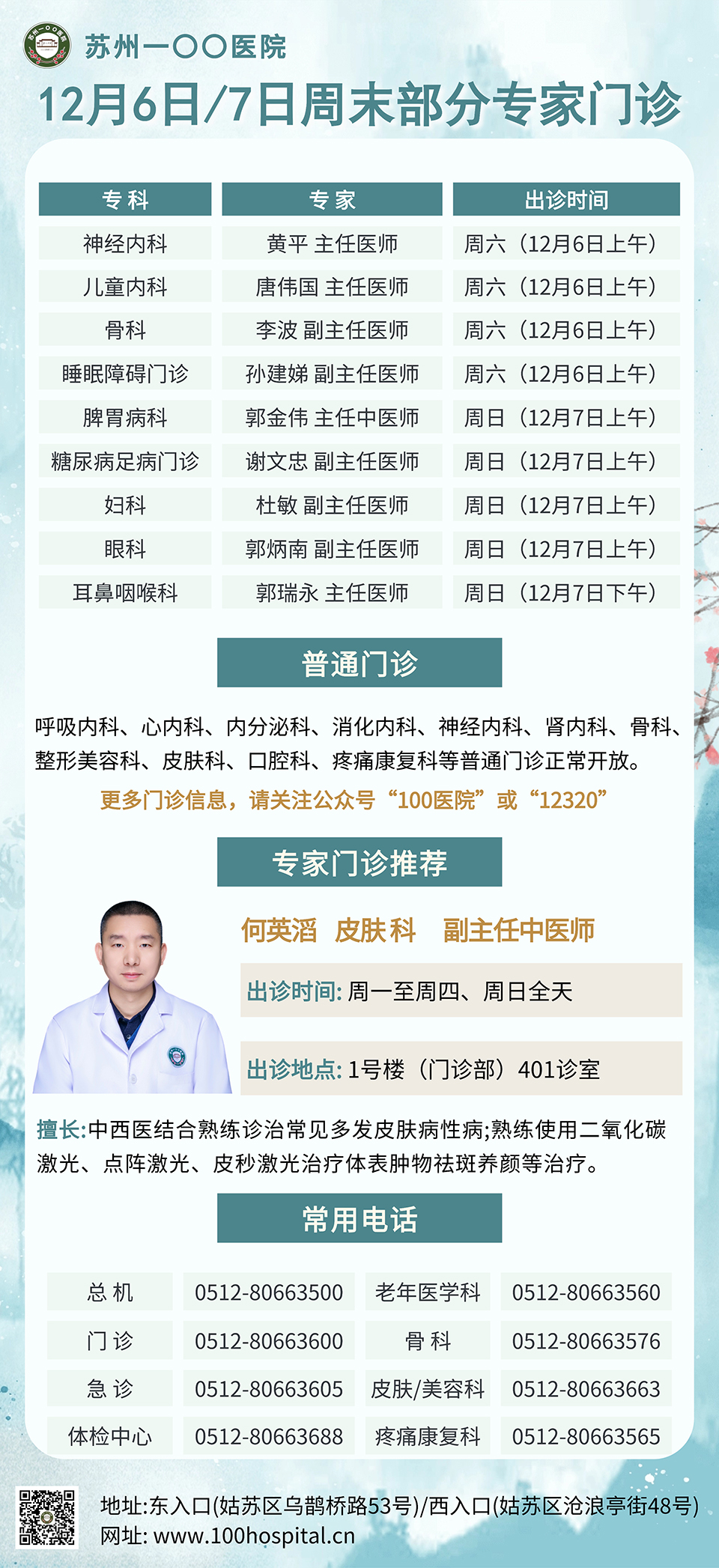 0512-80663605(急诊) 0512-80663688(体检中心)