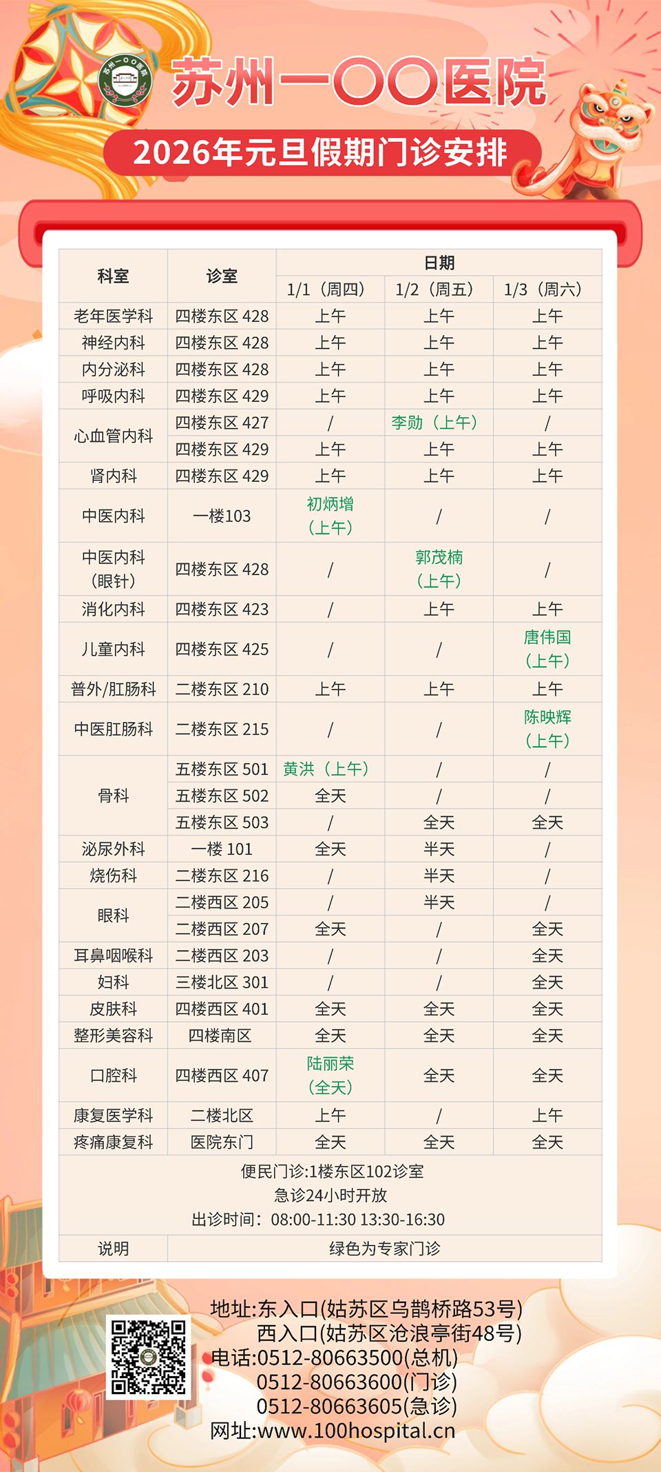 2026年元旦假期门诊安排