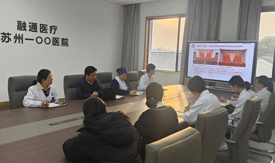 12月29日,苏州一〇〇医院党总支副书记胡腾以“深学细悟全会精神 勇担老年健康使命”为主题,为老年医学科支部全体党员讲授专题党课。党课紧密围绕党的二十届四中全会核心要义,系统传达医疗公司学习贯彻全会精神读书班、苏州市级机关工委及苏州市卫健委党组专题宣讲内容,结合医院发展实际和老年医学科发展定位,明确实践路径与工作要求,推动全会精神在基层支部落地生根。