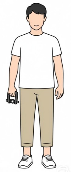 2.2握力器的指针向外侧,根据被测者手掌的大小调节,使食指的第二关节接近直角后进行测量。握力器尽量不要碰到身体或者衣服。测定时不应使握力器来回摆动。