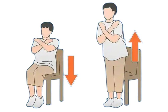 2.3在听到测试开始命令后,以尽可能快的速度完成五次起立和坐下动作。测试过程中,被测者双手交叉于胸前不能分开,站立时要求膝关节完全伸直。