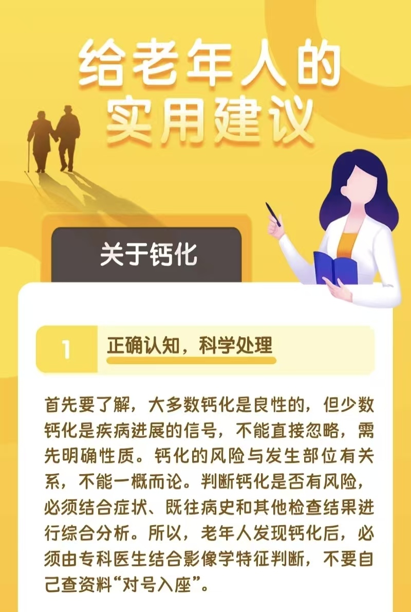不少老年人会在体检报告中看到“结节已钙化”“囊肿伴钙化”的提示,难免心生疑惑:钙化到底意味着病情稳定了,还是潜藏着危险?