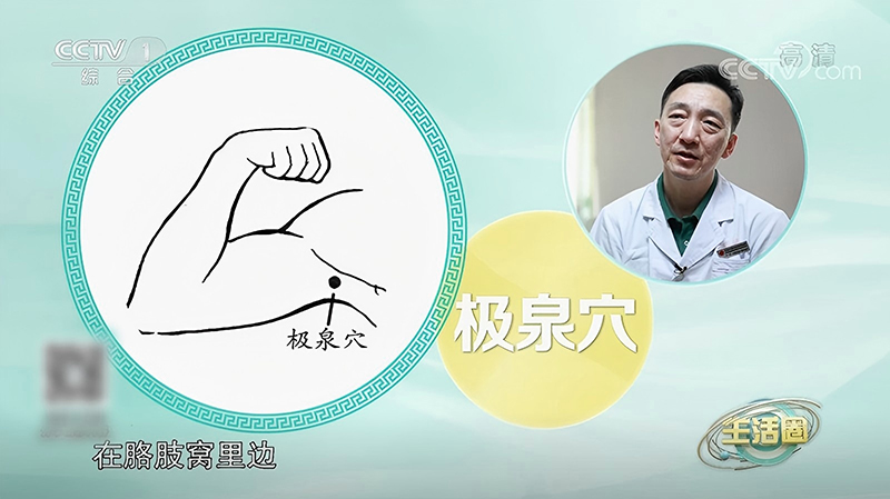 曲池穴位于肘关节外侧(屈肘时,肘横纹外侧端与肱骨外上髁连线中点)。用拇指指腹垂直按压曲池穴,双侧交替进行,每侧按揉60次,力度由轻到重,以局部酸麻感为佳。